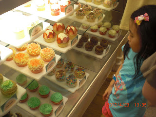 Finally, there were the smaller places like The Cupcake Cupboard peppered liberally along the Promenade. Here's my niece taking her sweet time making a decision on her cupcake. This was also a specialty place in that payment is necessary. It was so easy to find something to nosh onboard that gaining weight was an inevitability.